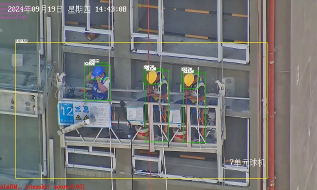 鯤云科技為該集團在濟南的10余個工地項目提供智能化安全監管解決方案,實現了對工地現場的全方位實時監控與智能分析。鯤云提供明火檢測、煙霧檢測、車輛違停識別、區域入侵識別、離崗識別、未戴安全帽檢測、跌倒檢測、裸土未覆蓋檢測、物料堆放檢測等工地場景算法,實時預警工地危險行為,并通過喇叭進行現場提醒干預。